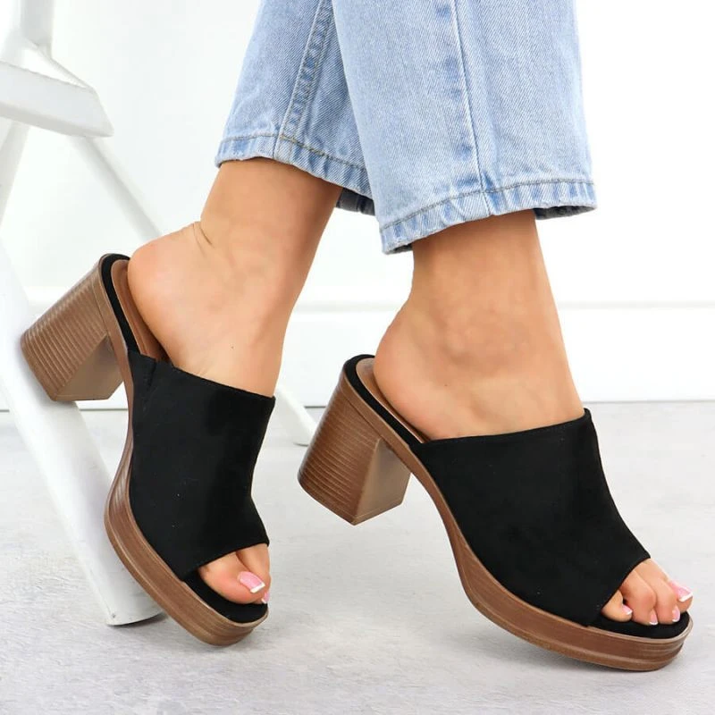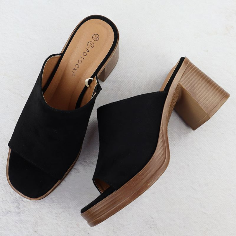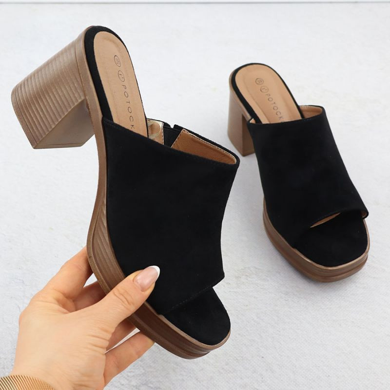 Dámské semišové žabky na jehlách černé model 22015553 - Potocki