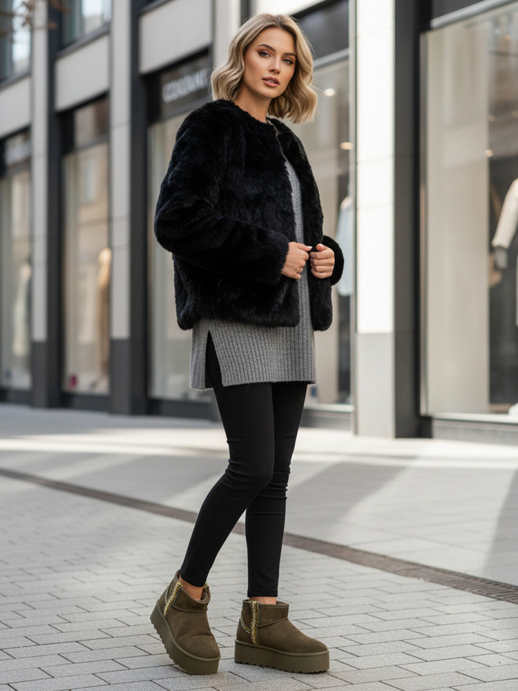 Tento model z měkkého eko-semiše kombinuje módní vzhled s vysokým komfortem. Jemné prošívání a ozdobné lemování mu dodávají charakter, zatímco měkký kožíšek uvnitř poskytuje teplo v chladných dnech. Díky nazouvacímu provedení se snadno nazouvá a dobře sedí na noze.