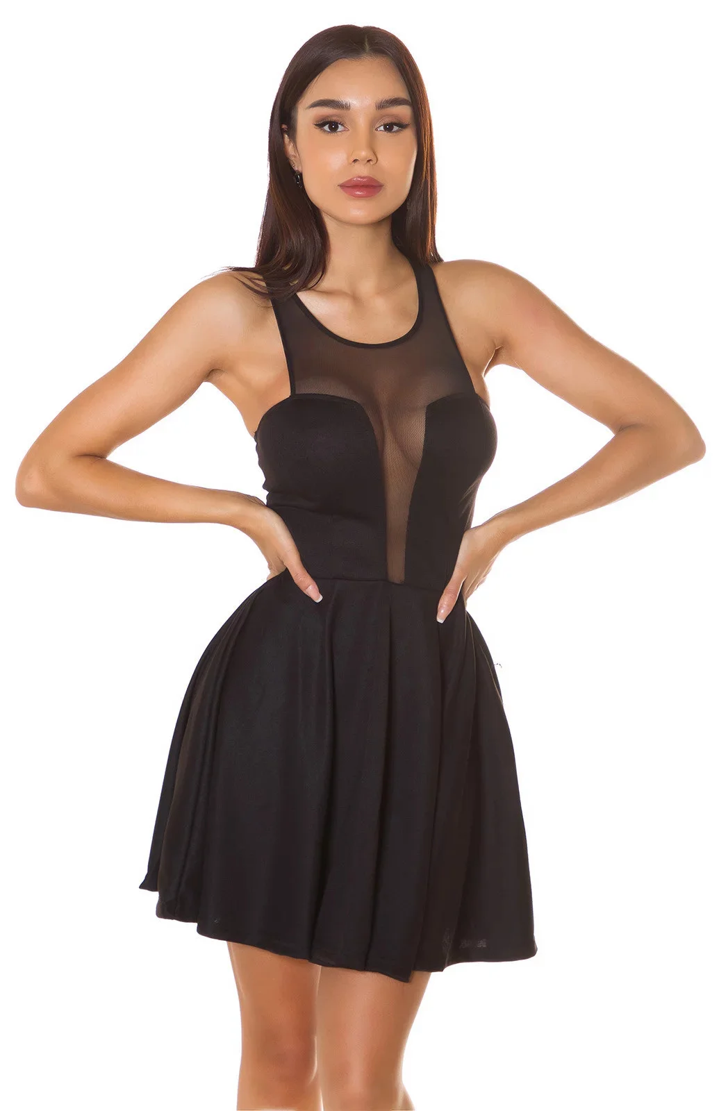 Dámské sexy minišaty s průhledným dekoltem 50226 Černá - KouCla