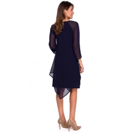 Dámské šifonové šaty s asymetrickým lemem model 20799203 tmavě modré - STYLOVE