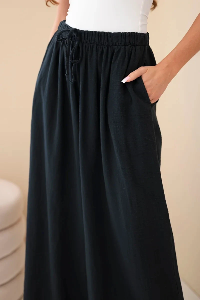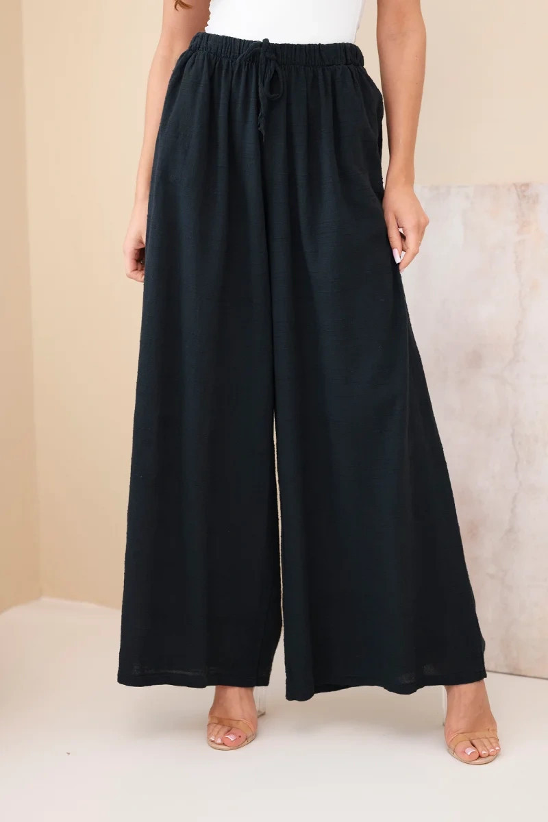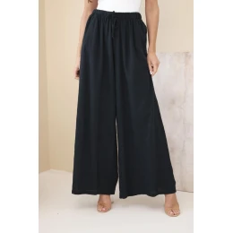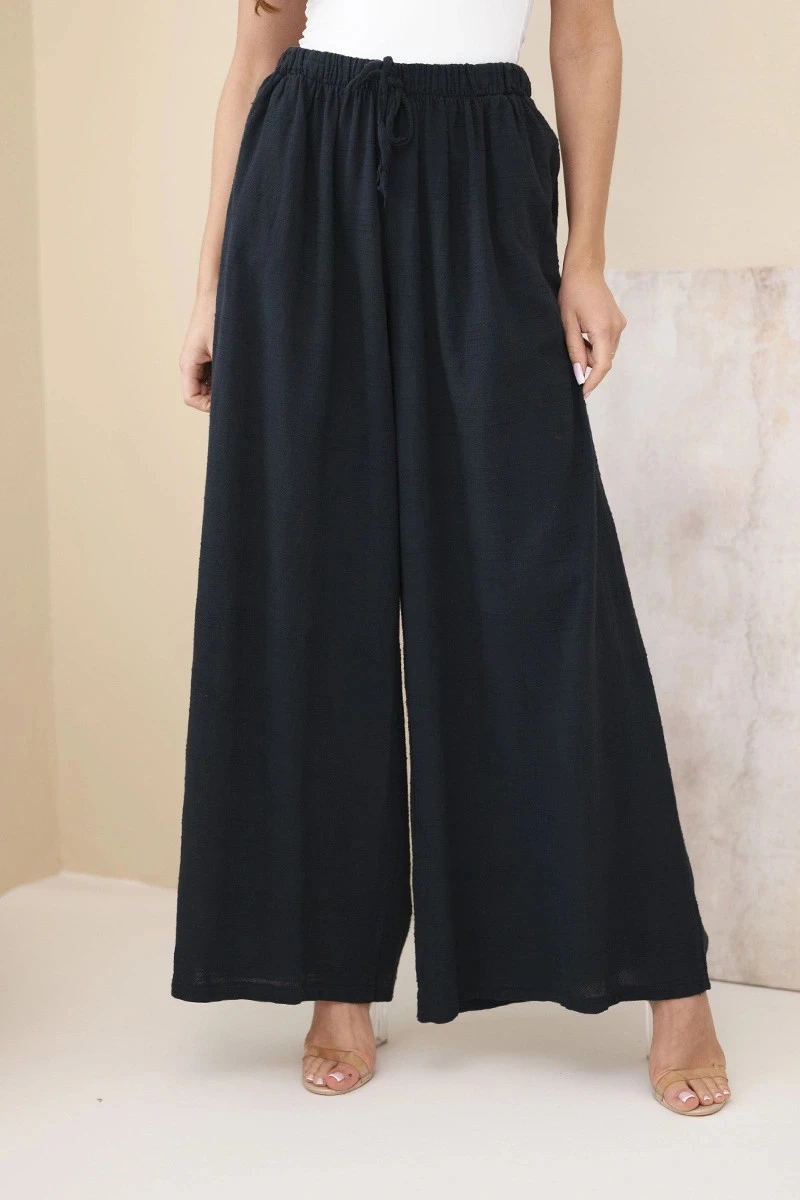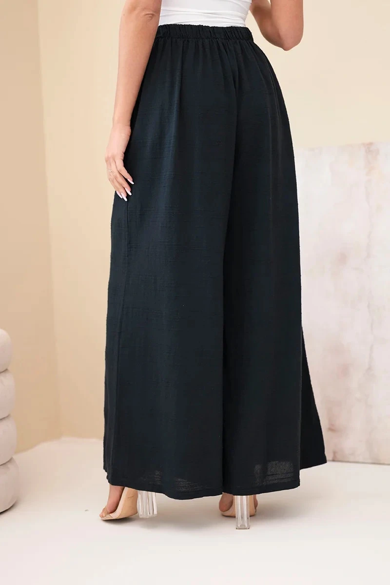 Dámské široké bavlněné kalhoty s gumou v pase černé