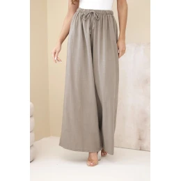 Dámské široké bavlněné kalhoty s gumou v pase fango