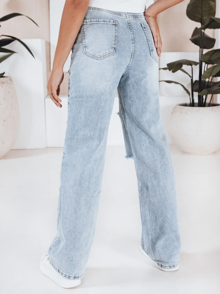 Dámské džíny s dírami široké nohavice modré UY2801