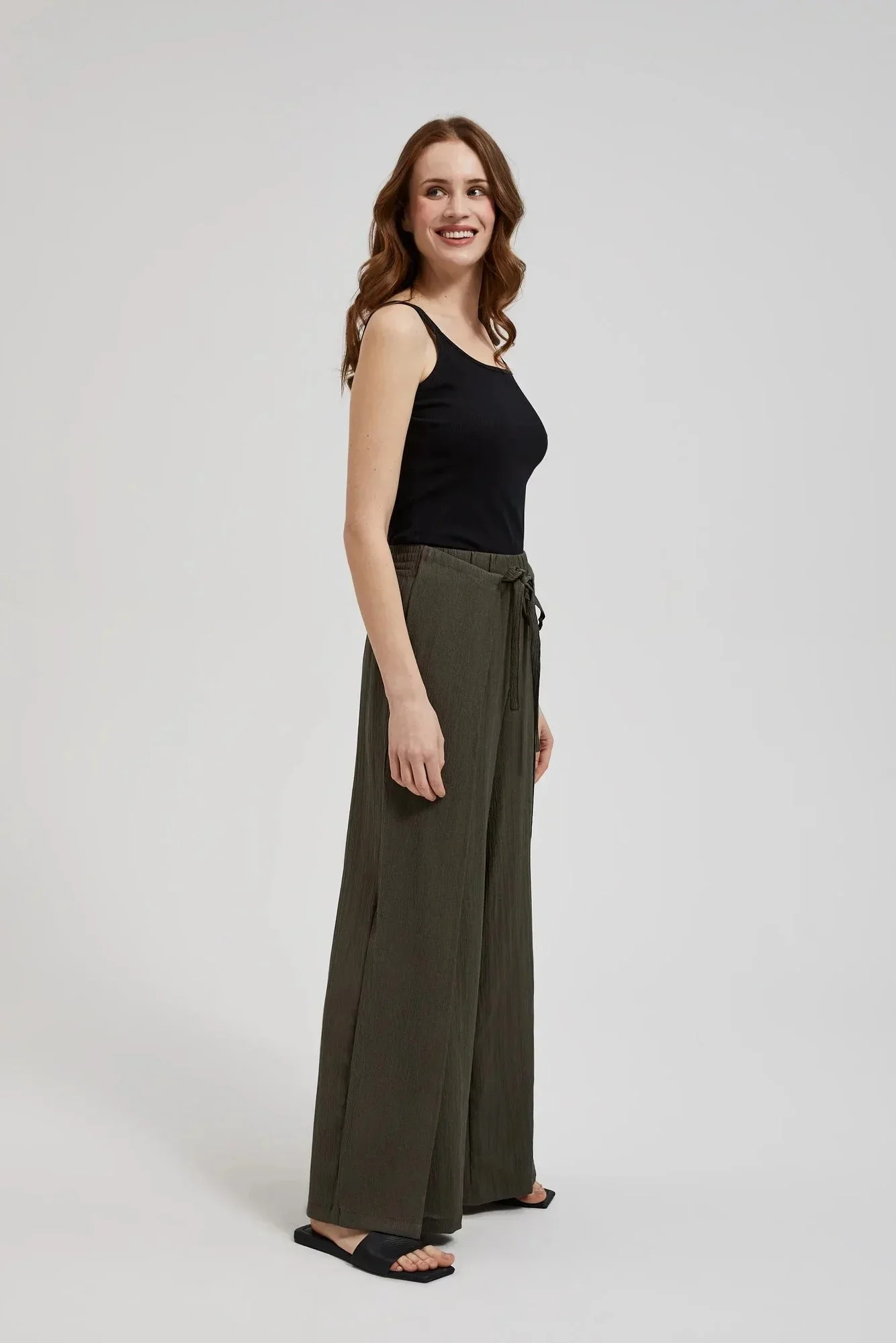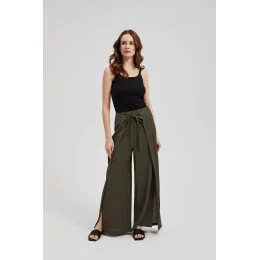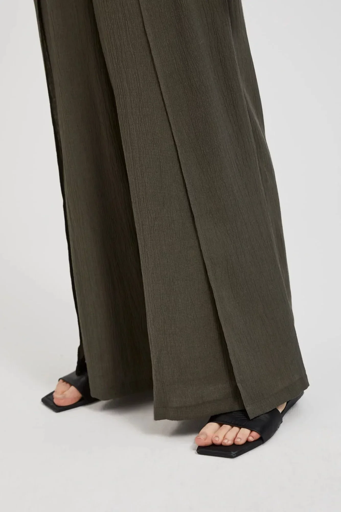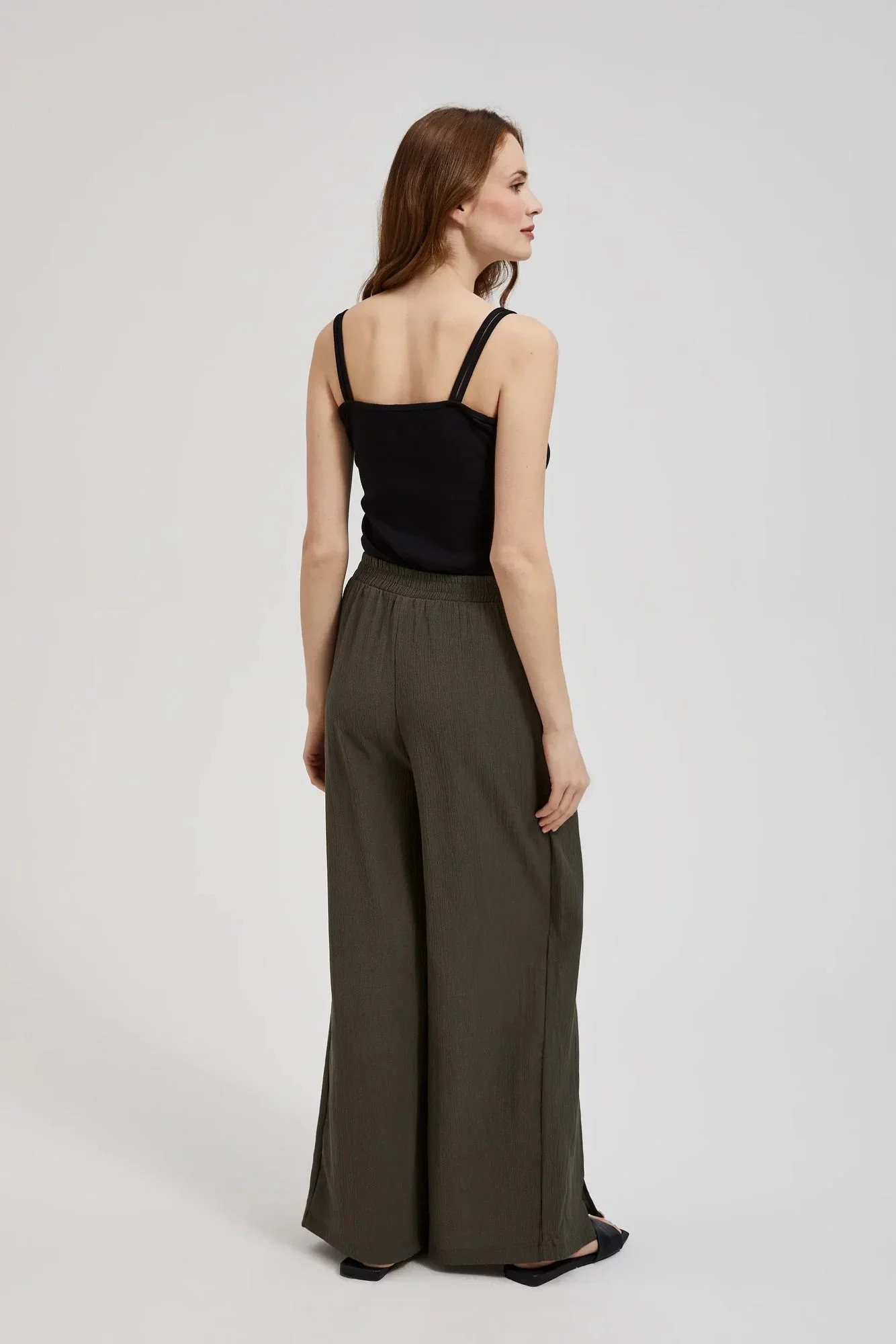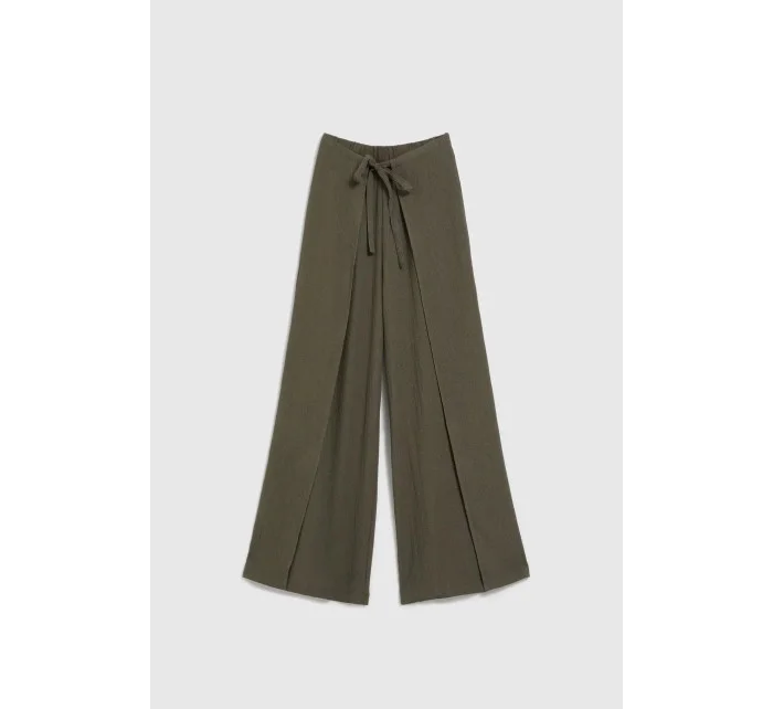 Přidání recenze k Široké dámské kalhoty s elastickým pasem tmavě béžová