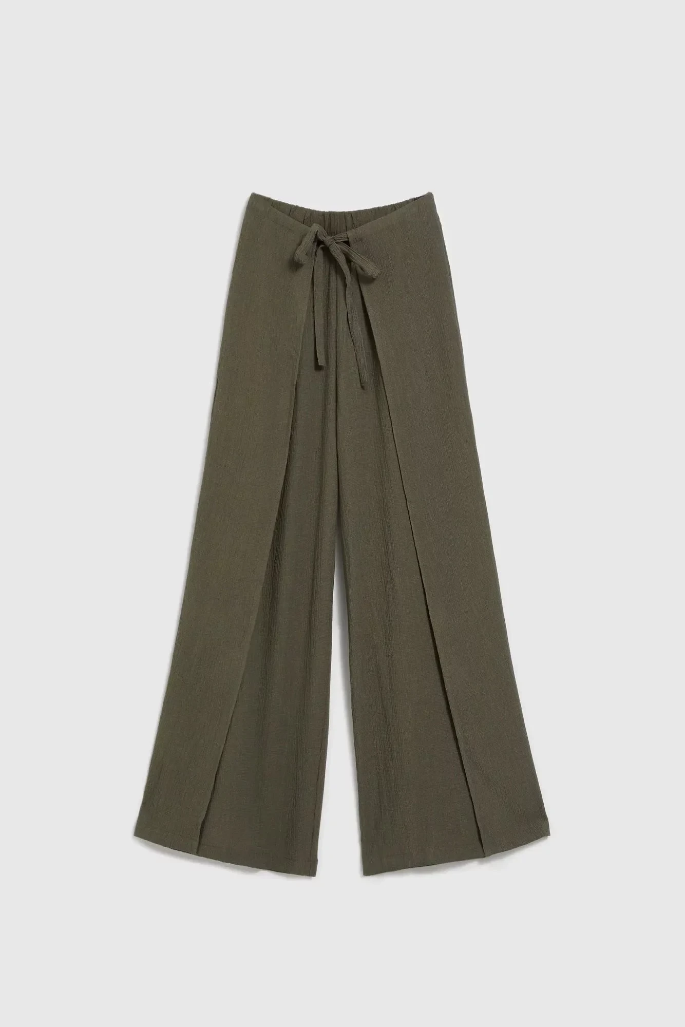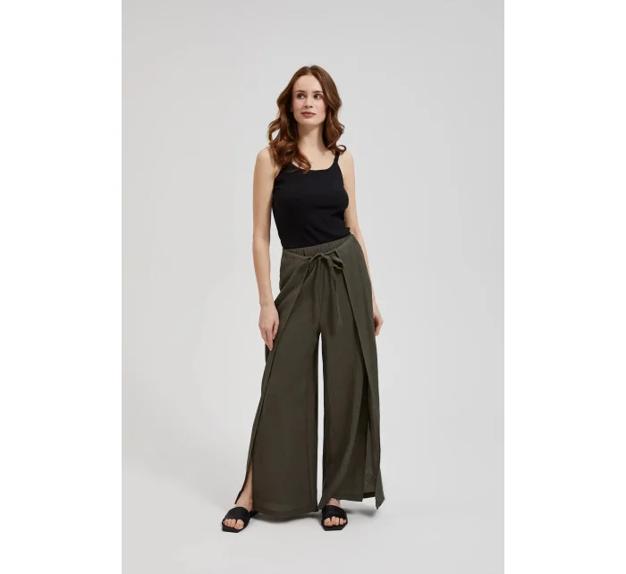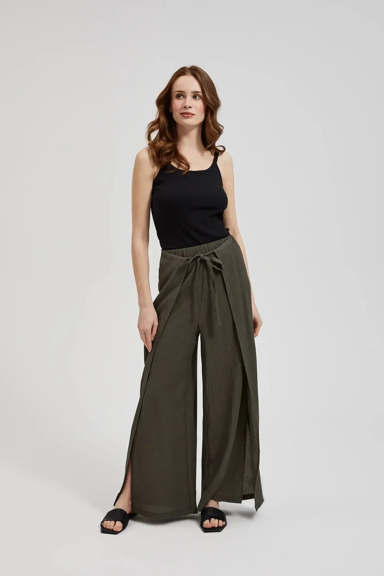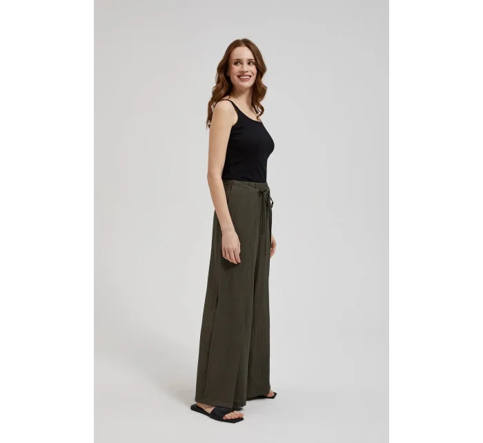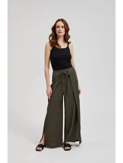 Přidání recenze k Široké dámské kalhoty s elastickým pasem tmavě béžová