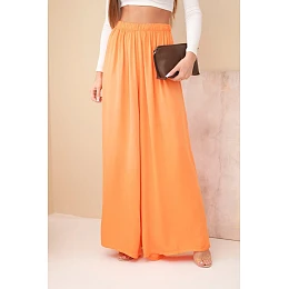 Dámské široké viskózové kalhoty s gumou v pase oranžové