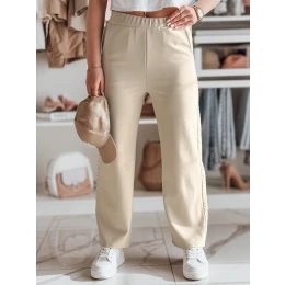 Prążkowane spodnie wide leg z elastyczną gumką w pasie, które zapewniają wygodę i idealne dopasowanie do sylwetki. Po bokach nogawek ozdobna koronka dodająca lekkości i stylowego akcentu. Dwie ozdobne kieszenie z przodu. Uniwersalny rozmiar pasuje od XS do L. Model łączy casualowy styl z eleganckimi detalami, pasując do wielu stylizacji.