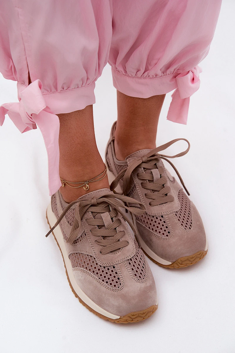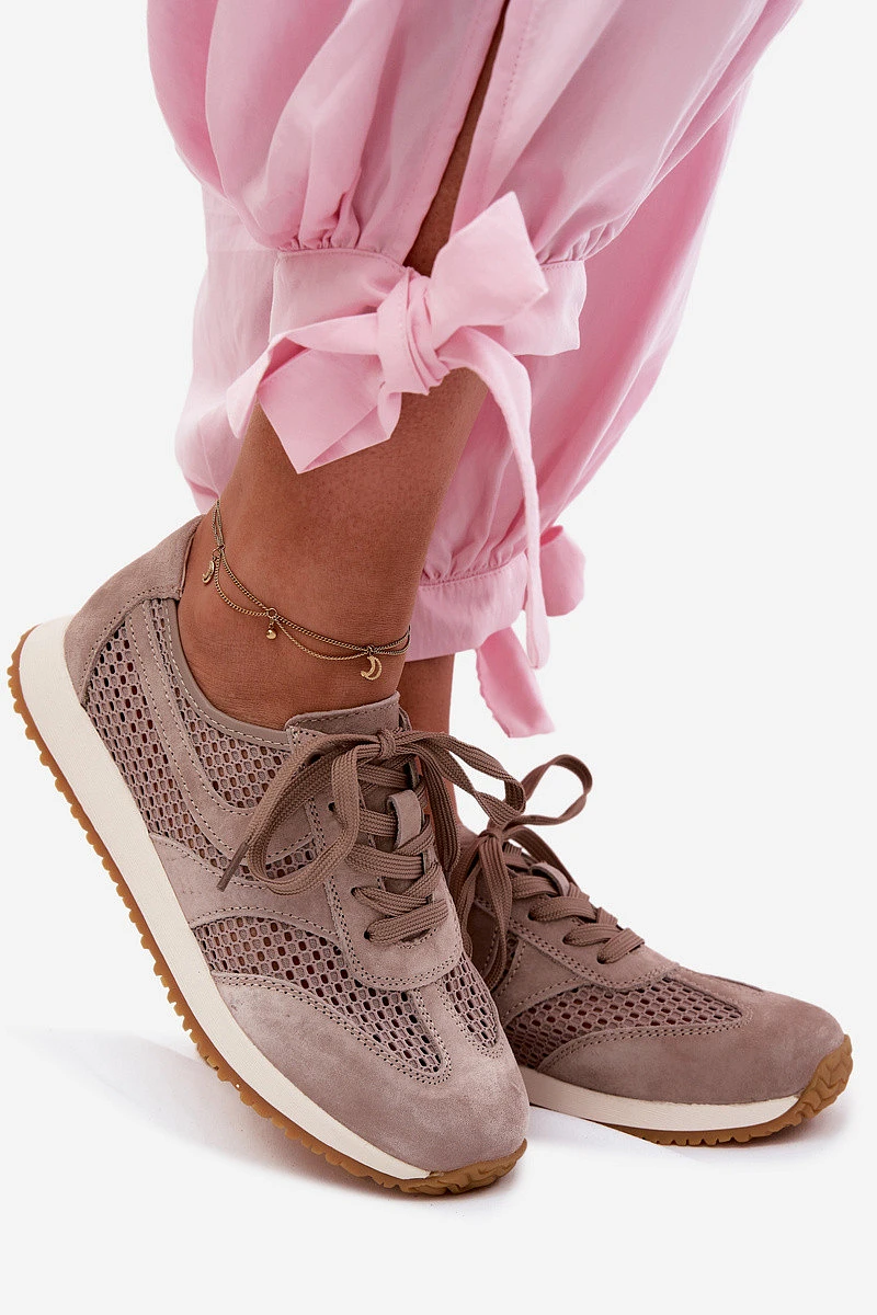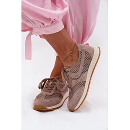 Dámské síťované tenisky z semiše tmavě béžové Gelina
