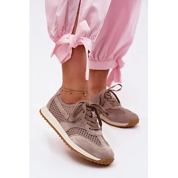 Dámské síťované tenisky z semiše tmavě béžové model 22123268 - EVENTO