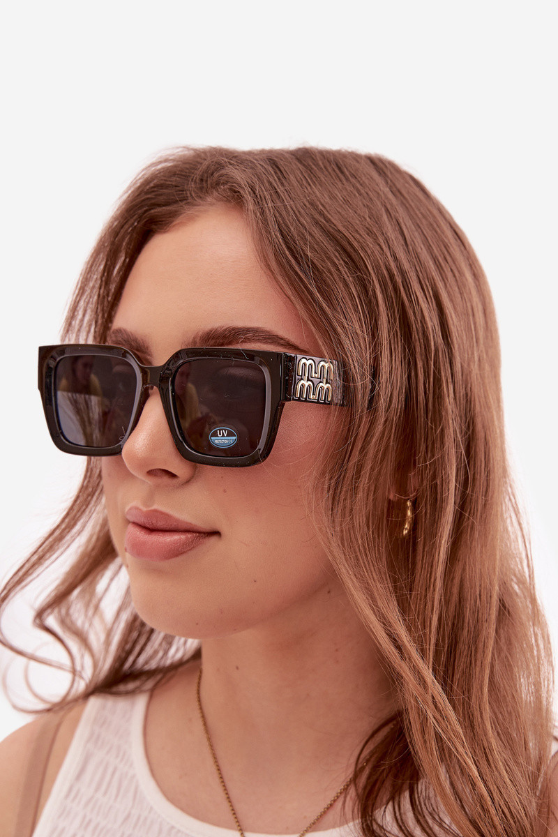 Stylové dámské sluneční brýle s UV ochranou. Efektivně chrání oči před škodlivým slunečním zářením a zajišťují pohodlí v slunečné dny. Ozdobné detaily na bocích dodávají modelu výjimečný charakter a zdůrazňují jeho elegantní vzhled. Ideální doplněk pro každodenní i výraznější stylizace.