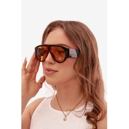 Stylové dámské sluneční brýle s UV filtrem jsou ideální kombinací ochrany a módního designu. Efektivně chrání oči před škodlivým slunečním zářením a zajišťují pohodlí v slunečné dny. Zlatý detail na stranicích dodává celku elegantní charakter a jemný lesk. Módní tvar činí brýle výrazným prvkem vašeho stylu. Model je dostupný v různých barvách, takže jej snadno sladíte se svým stylem i příležitostí.
