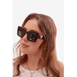 Dámské sluneční brýle typu kočičí oko jsou stylovým doplňkem, který zdůrazňuje ženský charakter každého outfitu. Vyrobené s UV filtrem, účinně chrání oči před škodlivým slunečním zářením. Model se vyznačuje zlatým detailem ve tvaru písmena „V“ umístěným na stranách, který dodává celku šmrnc a moderní akcent. Ideální volba pro ženy, které ocení módní vzhled spojený s funkčností.