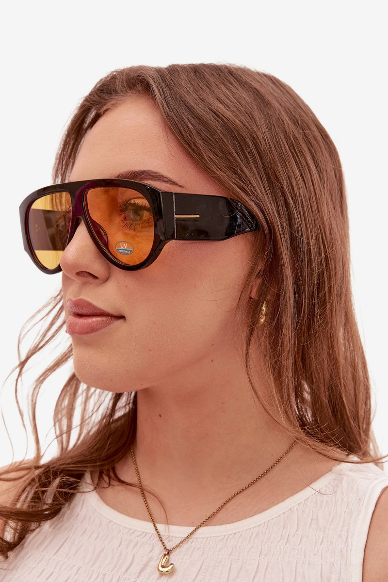 Stylové dámské sluneční brýle s UV filtrem jsou ideální kombinací ochrany a módního designu. Efektivně chrání oči před škodlivým slunečním zářením a zajišťují pohodlí v slunečné dny. Zlatý detail na stranicích dodává celku elegantní charakter a jemný lesk. Módní tvar činí brýle výrazným prvkem vašeho stylu. Model je dostupný v různých barvách, takže jej snadno sladíte se svým stylem i příležitostí.