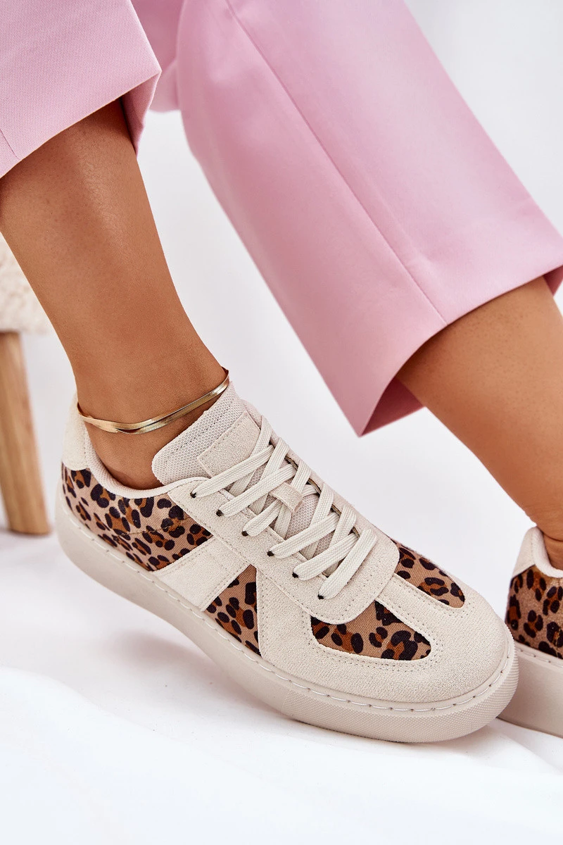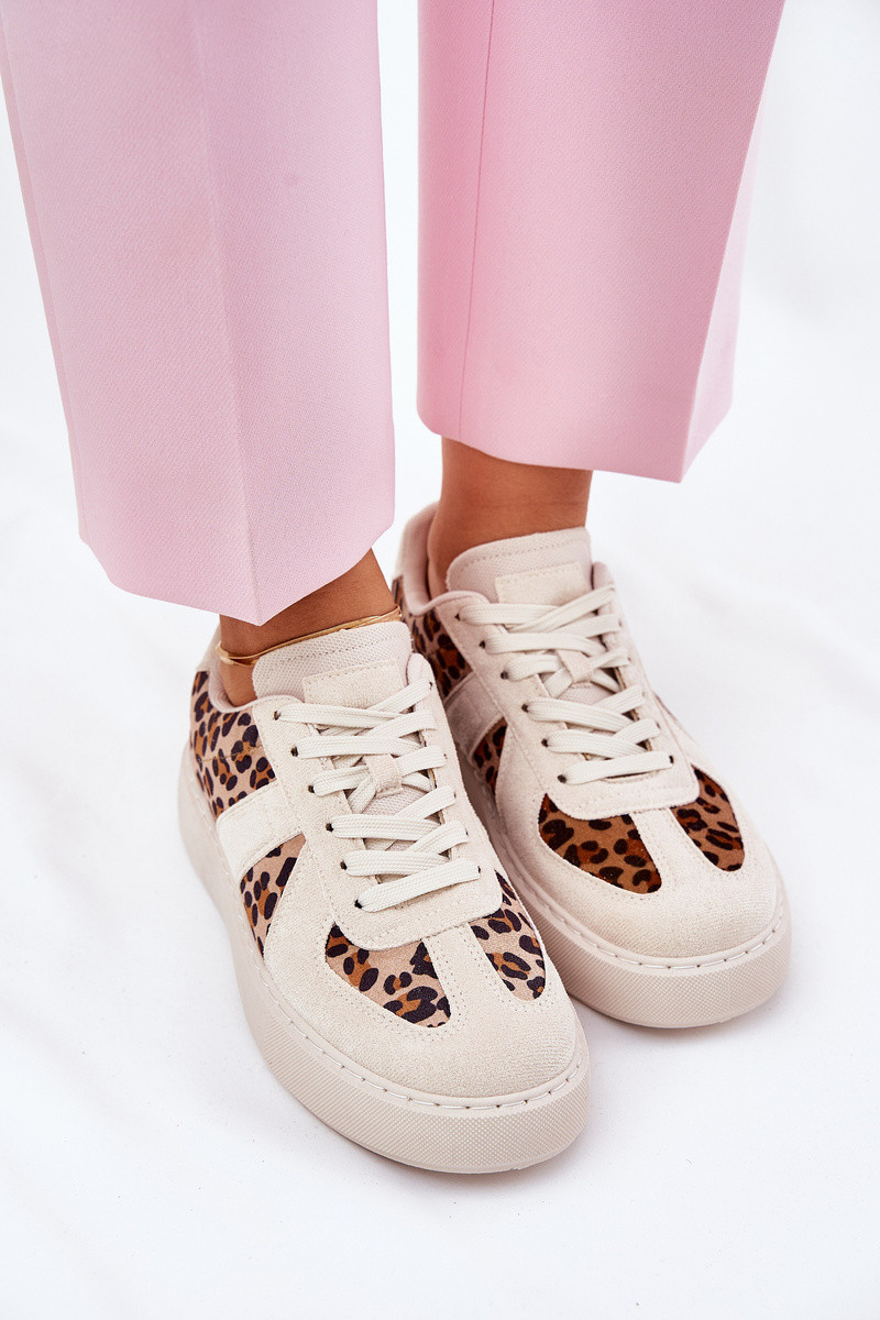 Dámské sneakers s leopardím vzorem na platformě béžové Nativira