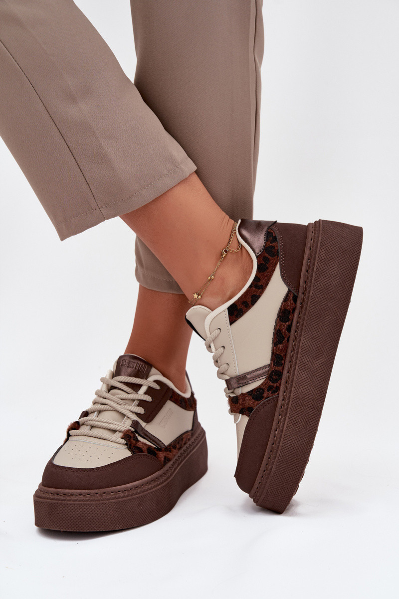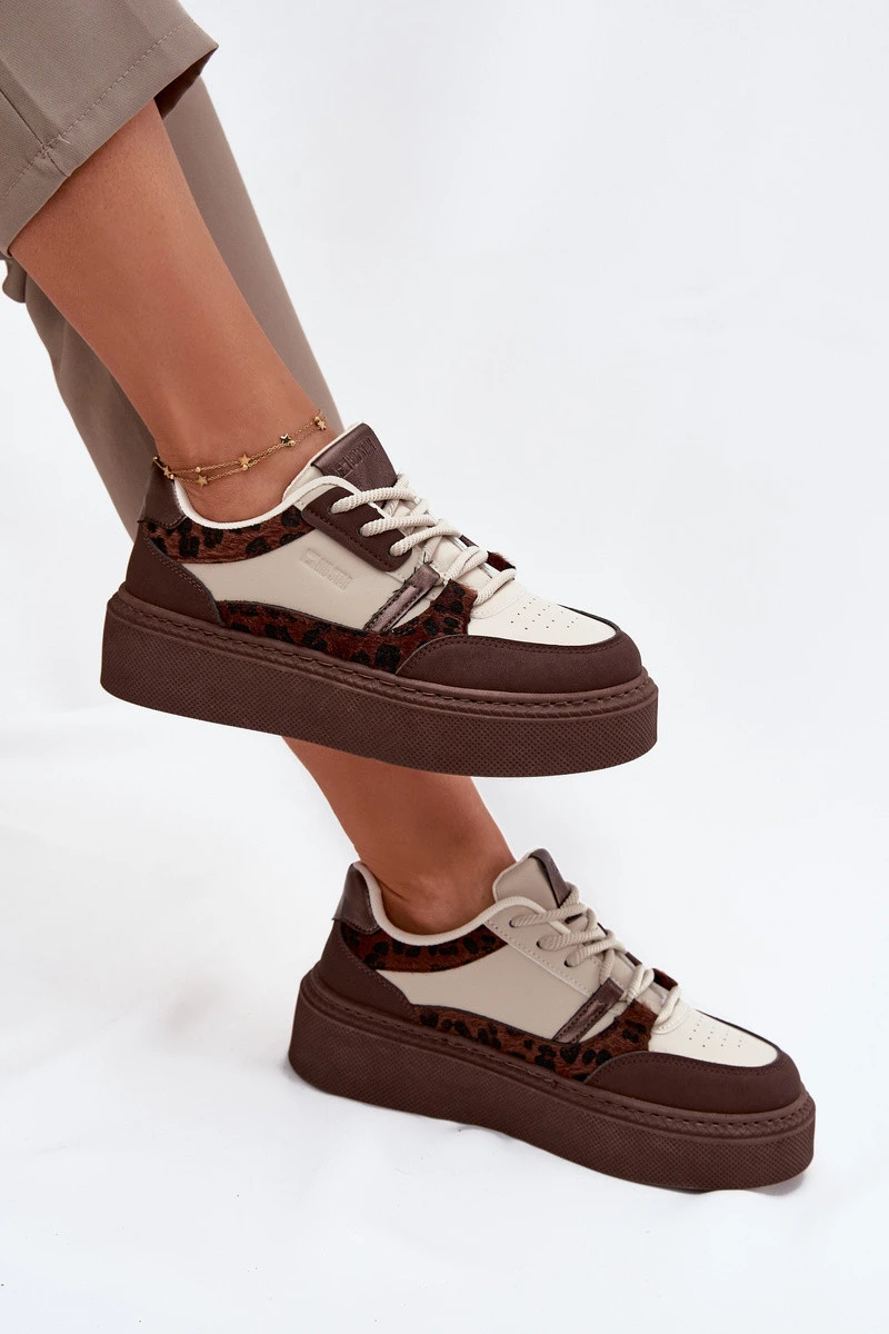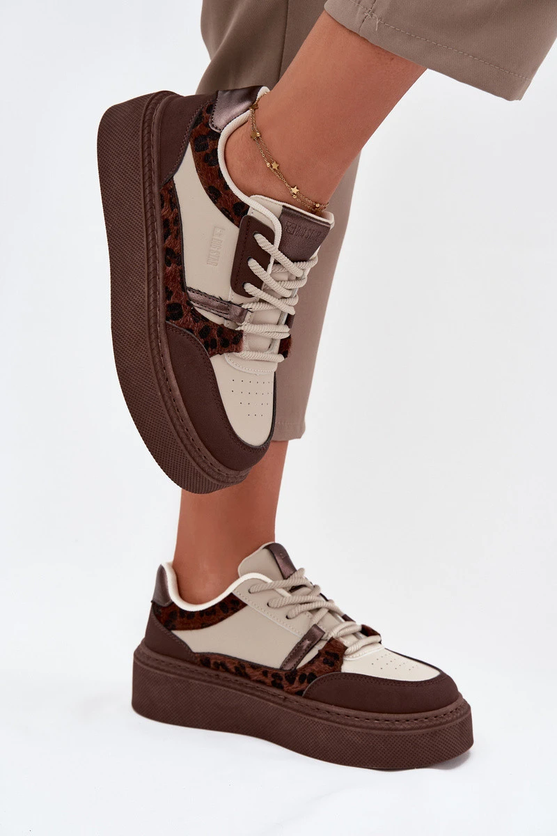 Dámské sneakersy na platformě Big Star SS274356 leopardí hnědo-bežové