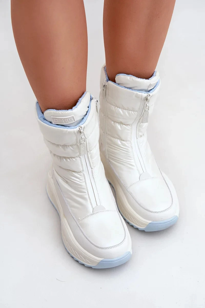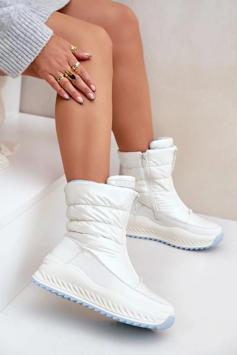 Bílé sněhule Big Star jsou ideální volbou pro zimní dny plné sněhu i městského ruchu. Nadčasový design v elegantní bílé barvě doplňuje zateplený vnitřek, který udrží nohy v teple i při nízkých teplotách. Robustní podrážka s hlubokým vzorkem zajišťuje stabilitu na kluzkém povrchu a pohodlí při každém kroku. Stylový a funkční model, který se stane zimní nezbytností.
