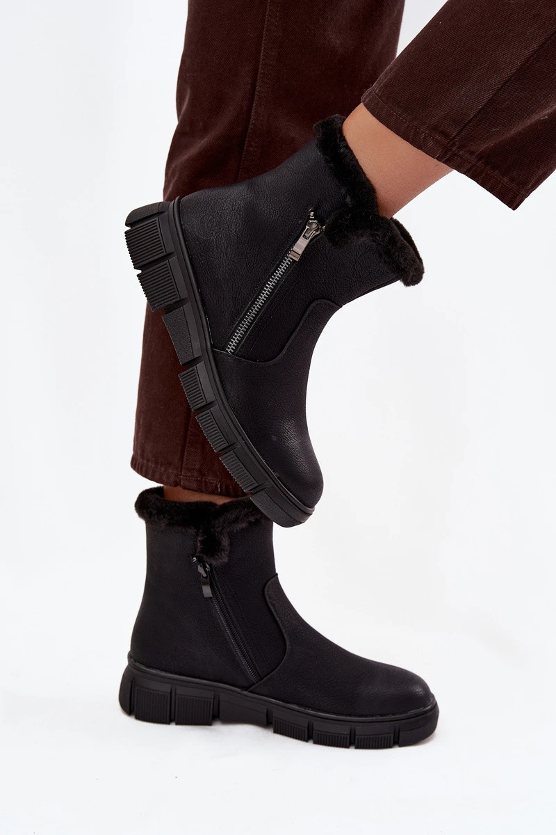 Dámské sněhule Briselle na platformě s kožešinou – černé
