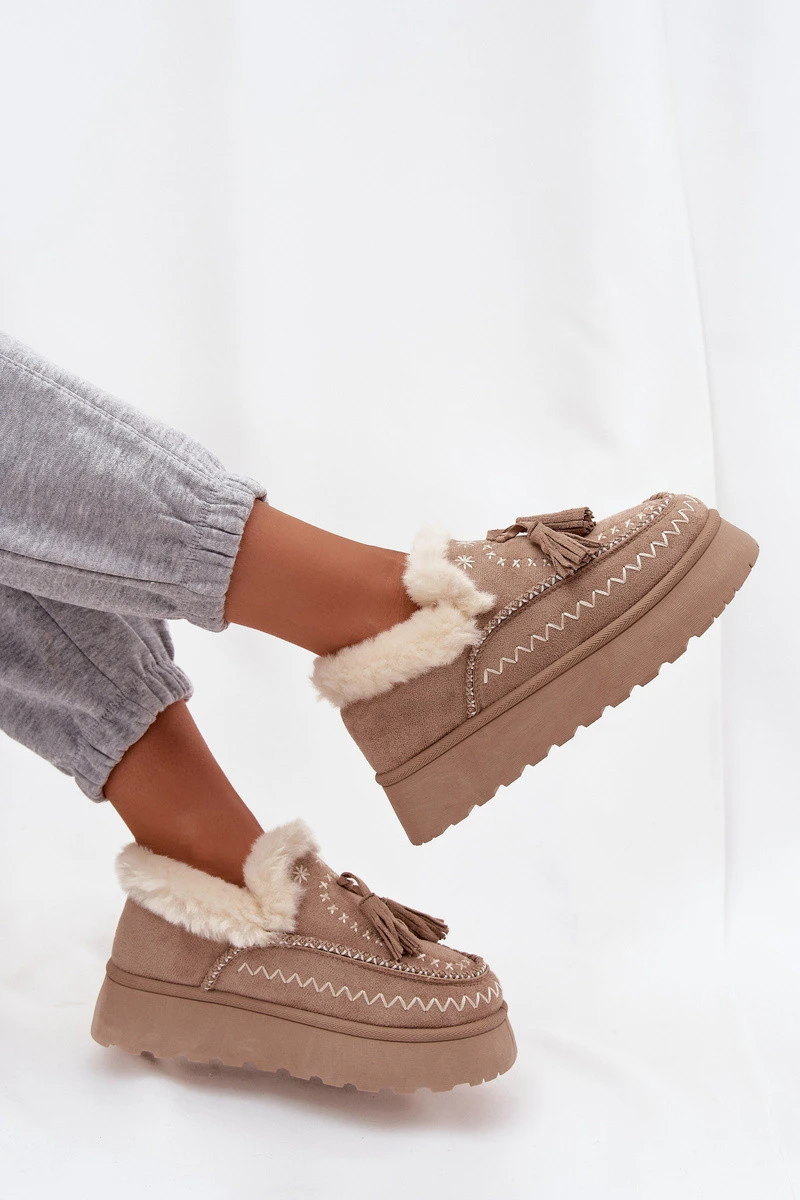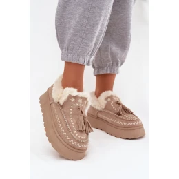Dámské sněhule Ferayne na platformě s kožešinou a třásněmi – béžové