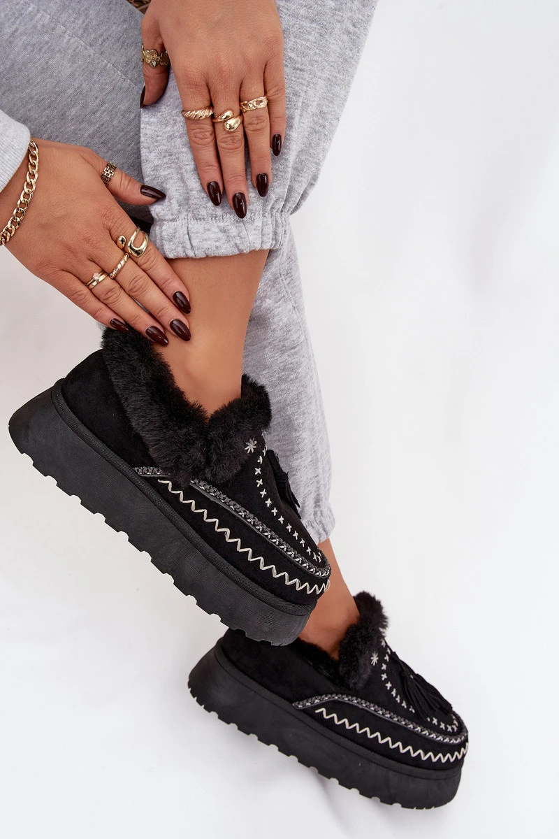 Dámské sněhule Ferayne na platformě s kožešinou a třásněmi – černé
