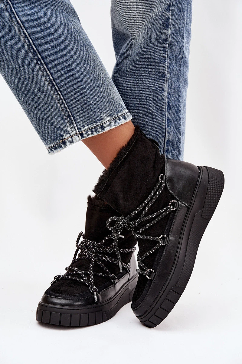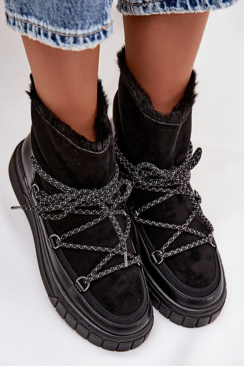 Černé dámské sněhule Isalisse s pohodlným vnitřním zateplením a šněrováním pro přesné uchycení nohy. Robustní podrážka zajišťuje stabilní chůzi i na kluzkém povrchu. Univerzální design vhodný pro zimní městské i volnočasové outfity.