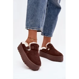 Dámské sněhule Jessina na platformě s kožešinou a sponou – čokoládové