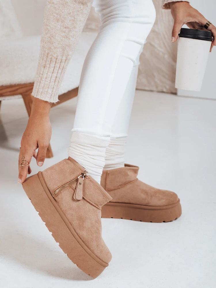 Śniegowce damskie na platformie beżowe Dstreet ZY1047