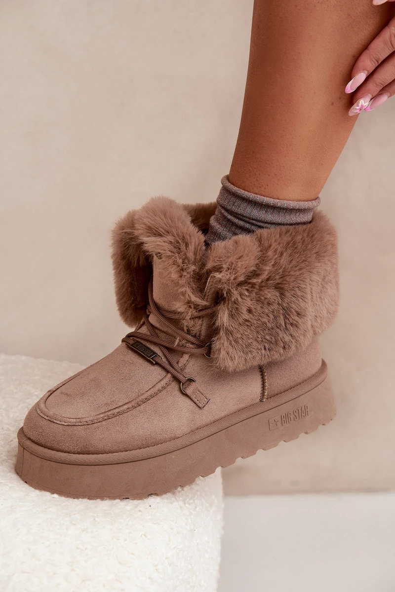 Dámské sněhule na platformě s kožešinkou a šněrováním Big Star – béžové