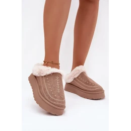 Dámské sněhule na platformě s kožešinou a tmavě béžové model 21788055 - Boto