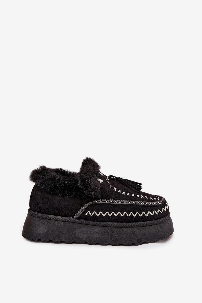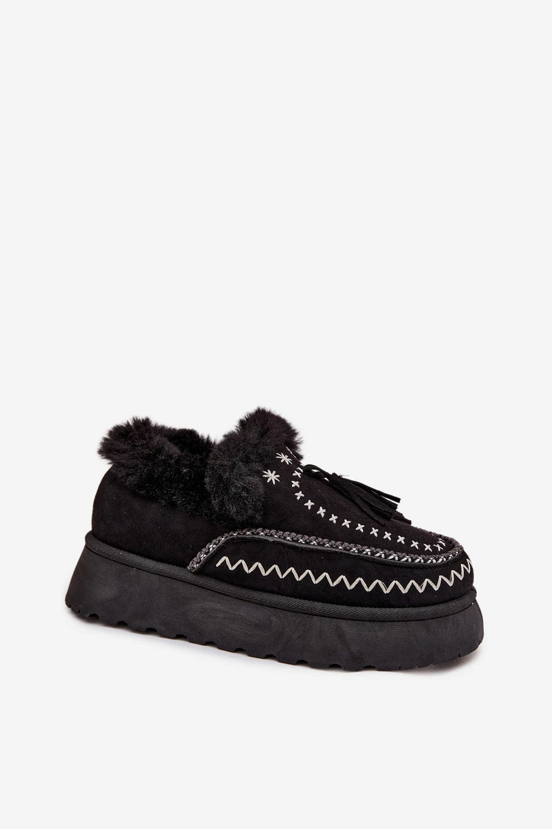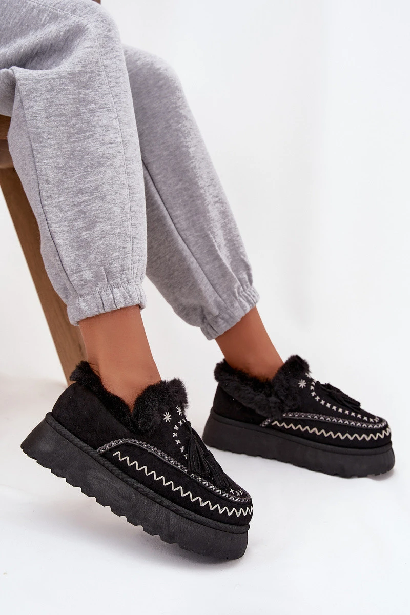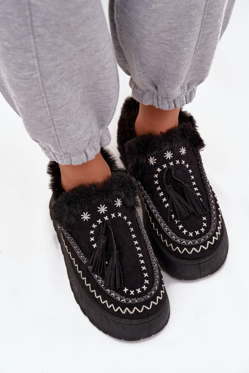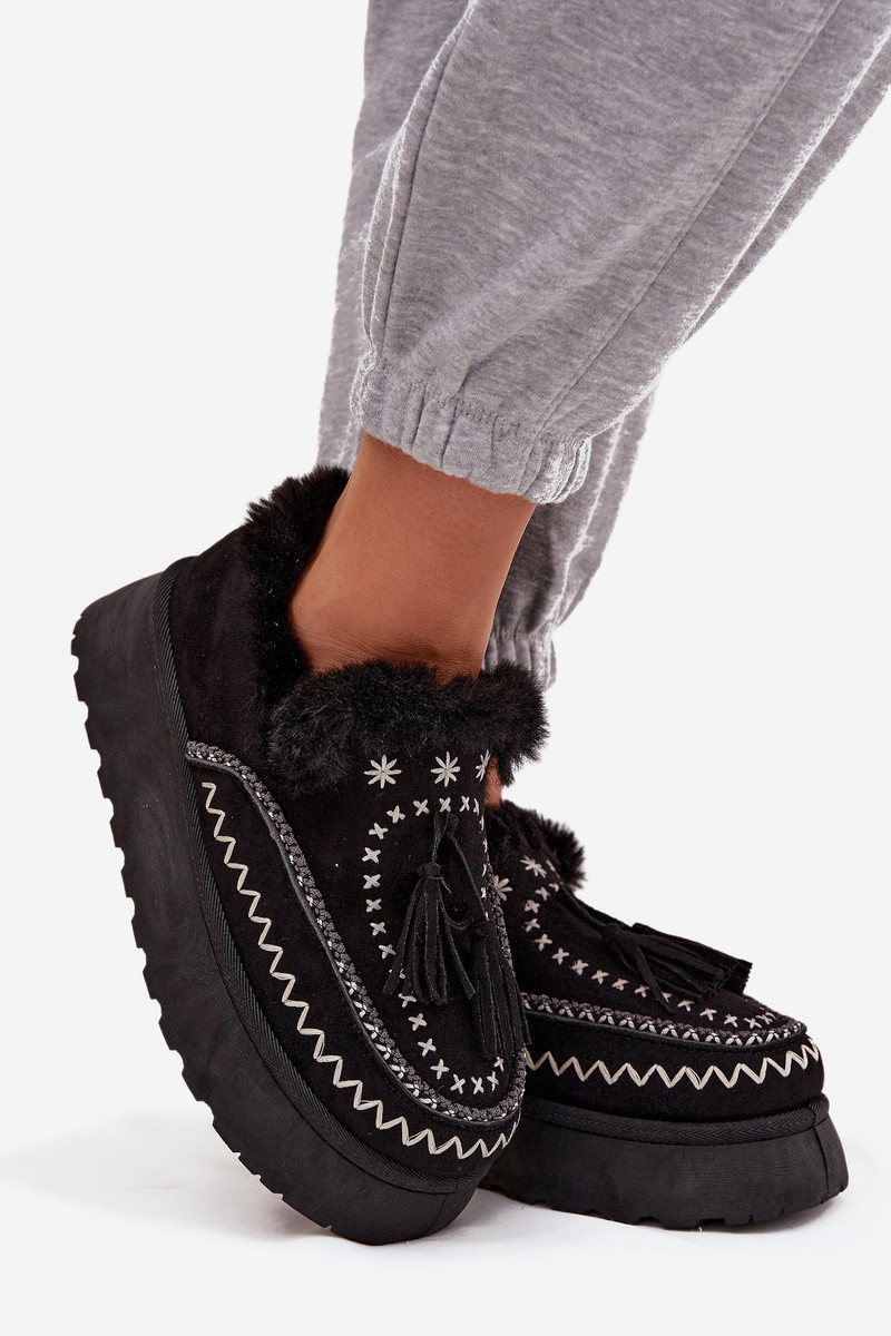 Dámské sněhule na platformě s kožíškem a třásněmi Černé Ferayne