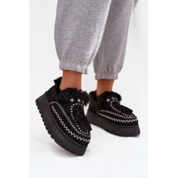 Dámské sněhule na platformě s kožíškem a třásněmi Černé model 21744632 - Boto