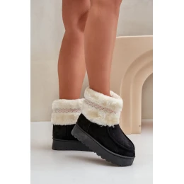 Dámské Sněhule Na Platformě S Kožíškem A Vzorem Černé Deepanti