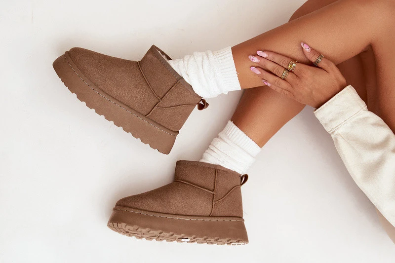 Khaki dámské sněhule Vesirae s platformou a hřejivým kožíškem uvnitř poskytují pohodlí a teplo i během chladných zimních dní. Stabilní platforma chrání chodidlo před chladem a zajišťuje jistý krok. Moderní design se snadno kombinuje s každodenními zimními outfity.