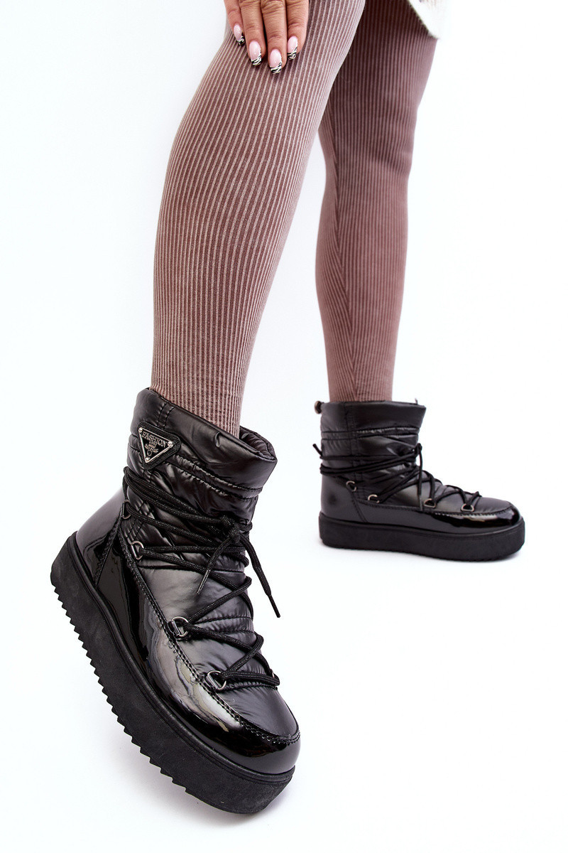Dámské sněhule s kotníkovým svrškem. Vyrobeno z kombinace textilního materiálu a ekokože. Umístěno na tlusté podrážce, která skvěle izoluje od studeného povrchu. Model se zářivým tkaničkami. Vnitřek je vyplněný umělým kožešinou. Ideální na mrazivé dny! Určitě byste je měla mít! Při výběru velikosti se řiďte tabulkou velikostí.