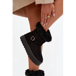 Dámské sněhule na platformě s přezkou a kožíškem Jesella – černé