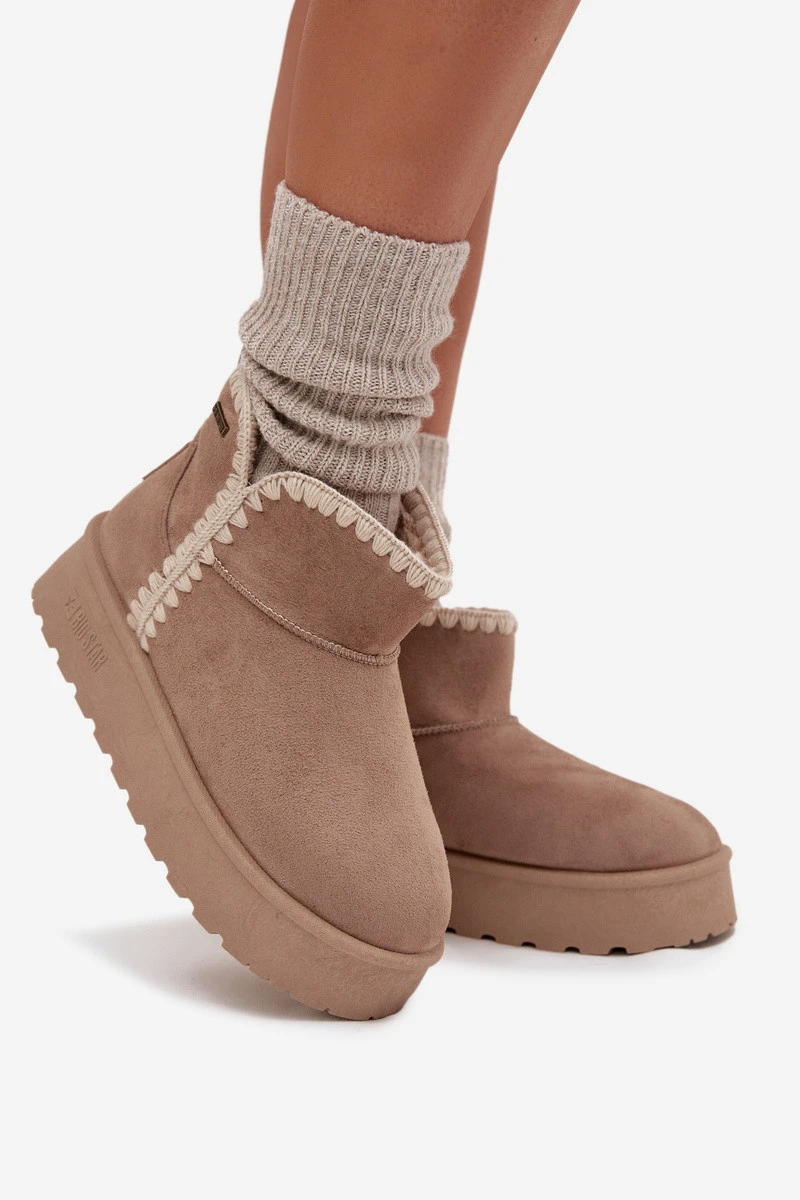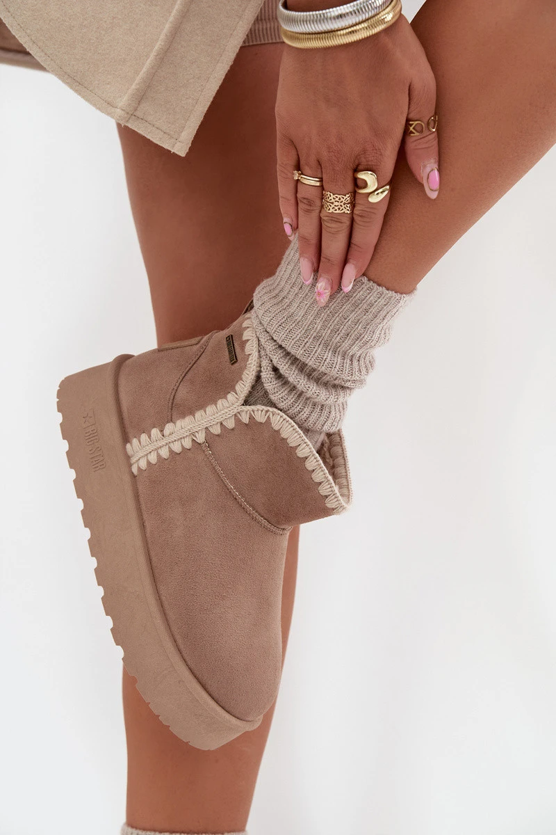 Dámské Sněhule Na Platformě S Prošíváním Big Star SS274129 Béžové
