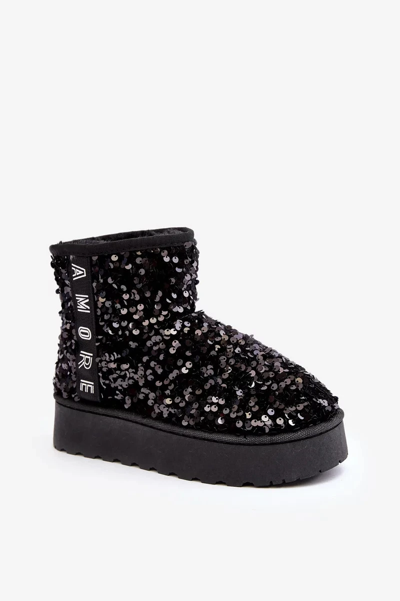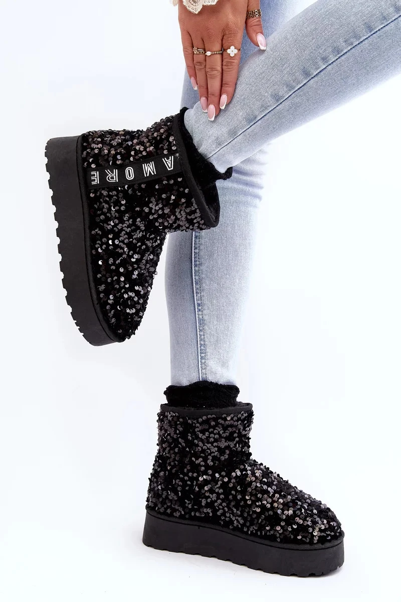 Dámské sněhule na platformě zdobené flitry, černá Silmo
