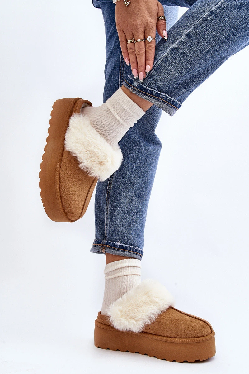 Dámské pantofle jsou ideálním doplňkem do vaší kolekce obuvi na podzimní a zimní sezónu. Vyrobeny z měkké ekologické zámšle. Tento model okouzluje nejen pohodlím, ale také stylovým provedením. Usazeny na masivní platformě z pryže. Další vyztužení kožešinou je dělá ideální volbou na chladnější dny. Určitě byste je měla mít! Při výběru velikosti se řiďte tabulkou velikostí.