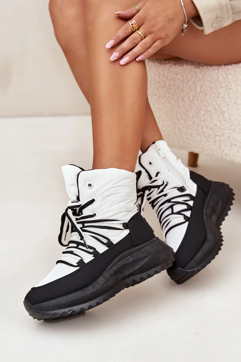 Dámské sněhule Big Star v moderní bílo-černé kombinaci jsou nepřehlédnutelným kouskem pro zimní sezónu. Designově čisté, ale zároveň výrazné – ideální pro ženy, které chtějí spojit funkčnost s trendy vzhledem. Vyšší střih chrání před chladem, zatímco měkký vnitřní kožíšek udržuje nohy v příjemném teple. Zapínání na zip na vnitřní straně usnadňuje obouvání. Hrubá podrážka s hlubokým vzorkem zajišťuje stabilitu i na zasněženém nebo zledovatělém povrchu.