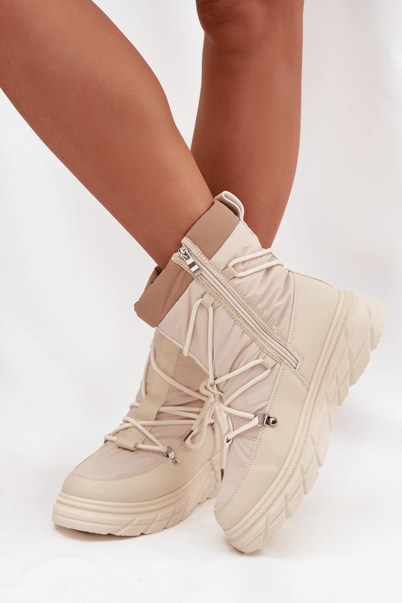 Tyto sněhule spojují funkčnost, pohodlí a moderní design. Vyrobené z kvalitních materiálů, které zaručují odolnost vůči chladu i vlhkosti. Měkká vnitřní podšívka příjemně zahřeje a poskytne komfort po celý den. Zapínání na zip usnadňuje obouvání, zatímco protiskluzová podrážka zajistí stabilitu na kluzkém povrchu. Béžové provedení se snadno kombinuje s jakýmkoliv zimním outfitem.
