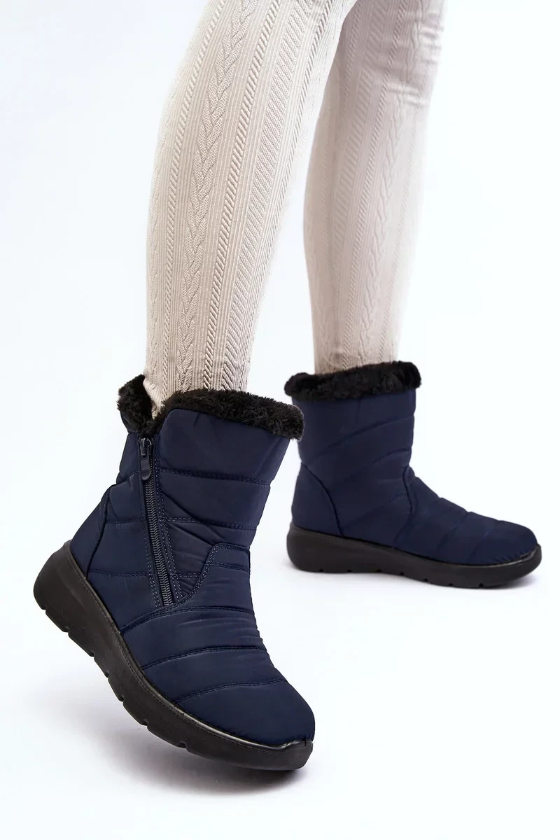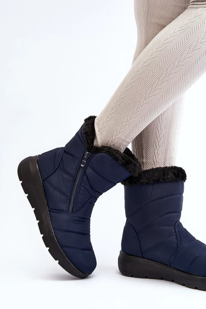 Dámské sněhule na zip s kožíškem, tmavě modrá Zeuna
