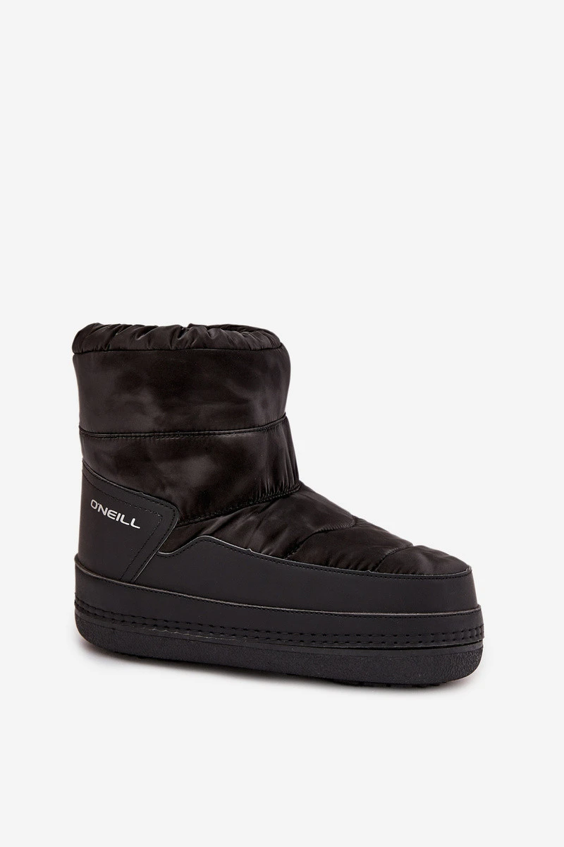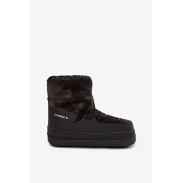 Černé dámské sněhule O’Neill Lisa Chelsea Mid s vnitřním zateplením, které udržuje nohy v teple i v zimních podmínkách. Působí odolně vůči větru a chladu. Vlícování / nazouvání je jednoduché – model je „slip‑on“. Platforma má výšku přibližně 2 cm, což pomáhá izolovat od chladného povrchu.