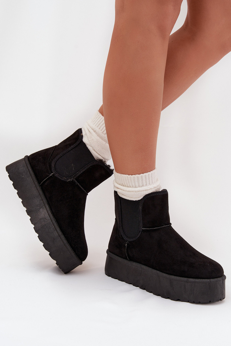 Módní dámské sněhule usazené na platformě, která efektivně izoluje od studené země, jsou skvělou volbou na zimní dny. Vyrobené z eko semiše, zajišťují elegantní vzhled, a elastické vložky v botě garantují pohodlí a přizpůsobení. Zateplení silným kožíškem poskytuje teplo i v nejchladnějších dnech. Tento stylový model se skvěle hodí k různým zimním stylizacím. Při výběru velikosti se řiďte tabulkou velikostí.