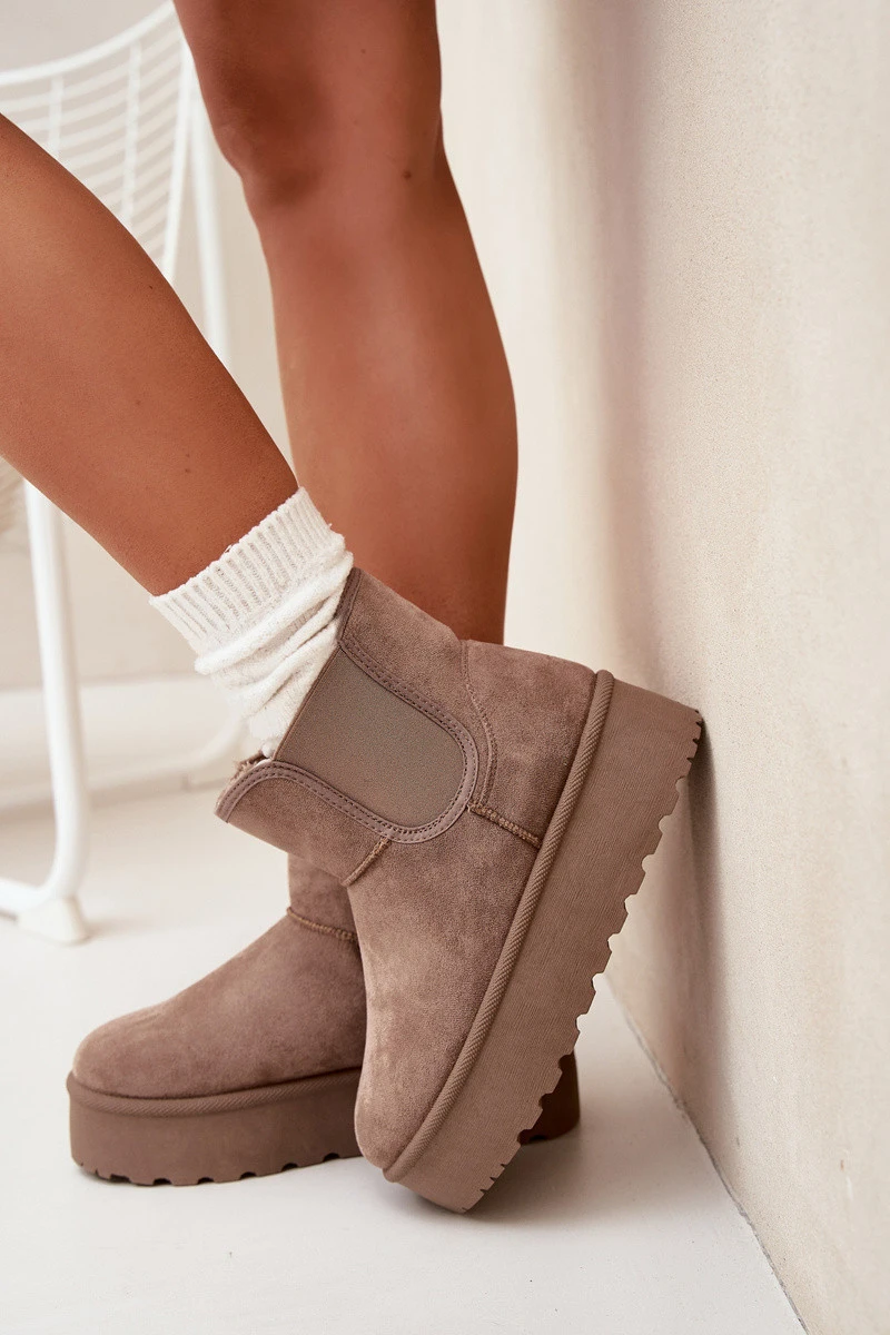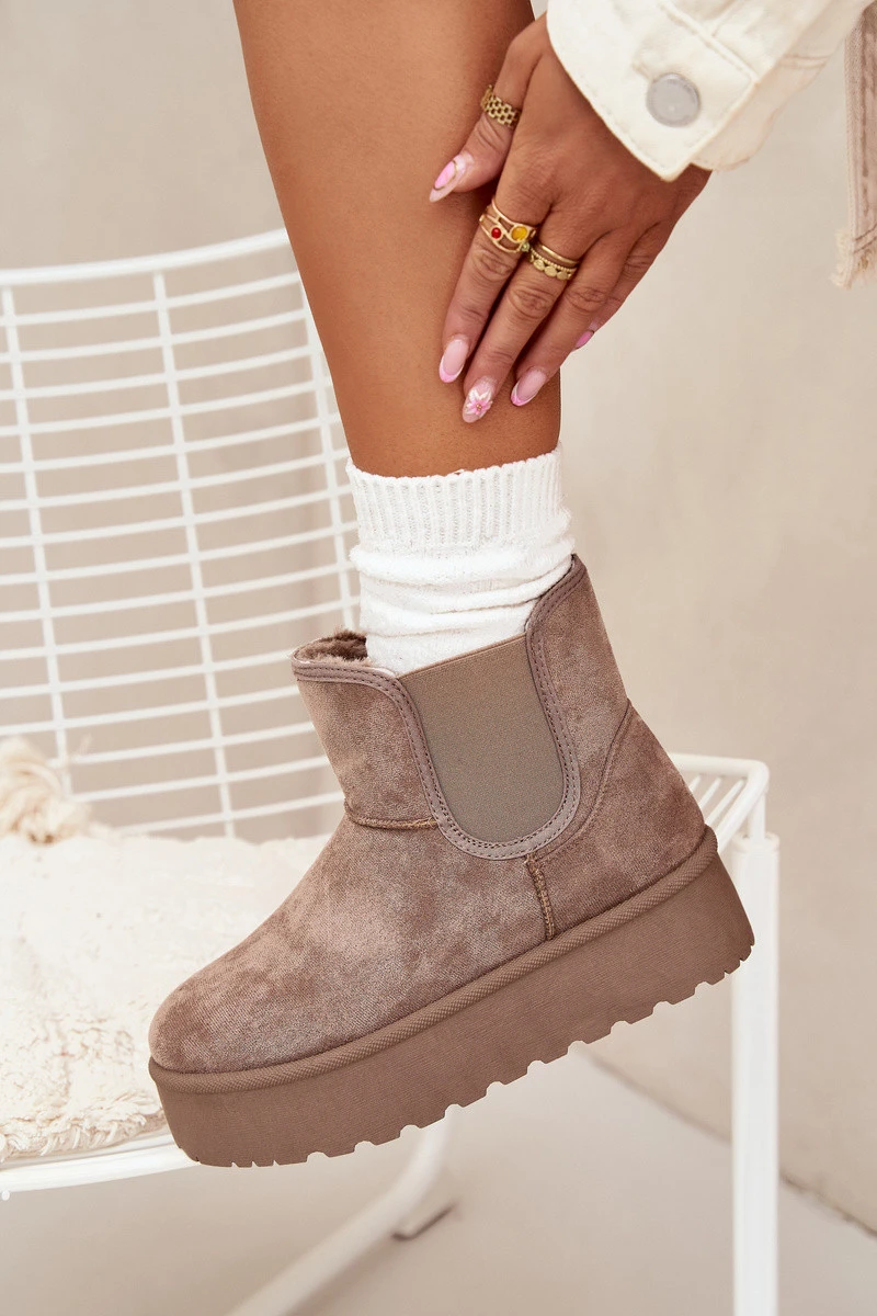 Módní dámské sněhule usazené na platformě, která efektivně izoluje od studené země, jsou skvělou volbou na zimní dny. Vyrobené z eko semiše, zajišťují elegantní vzhled, a elastické vložky v botě garantují pohodlí a přizpůsobení. Zateplení silným kožíškem poskytuje teplo i v nejchladnějších dnech. Tento stylový model se skvěle hodí k různým zimním stylizacím. Při výběru velikosti se řiďte tabulkou velikostí.