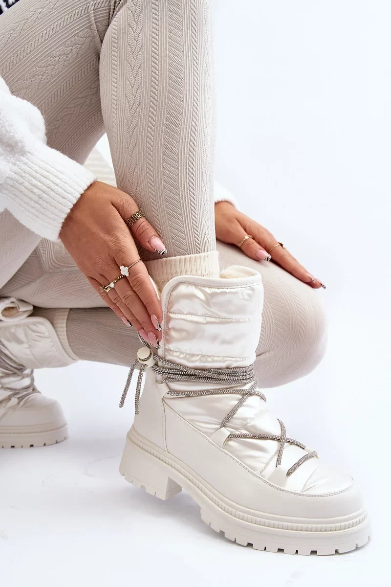 Dámské sněhule s ozdobným šněrováním, bílá Rilana