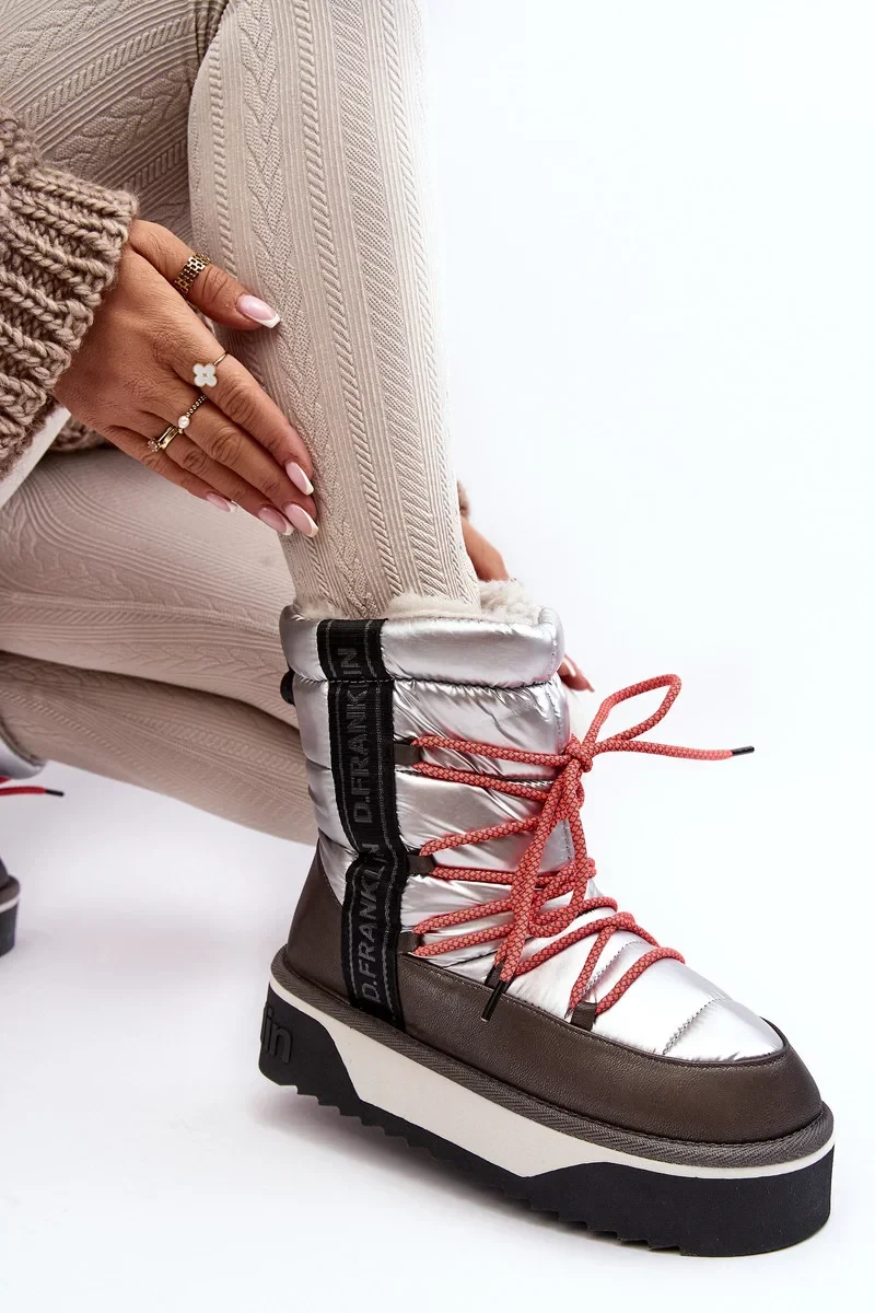 Dámské sněhule se silnou podrážkou, Vegan D.Franklin Stříbrný
