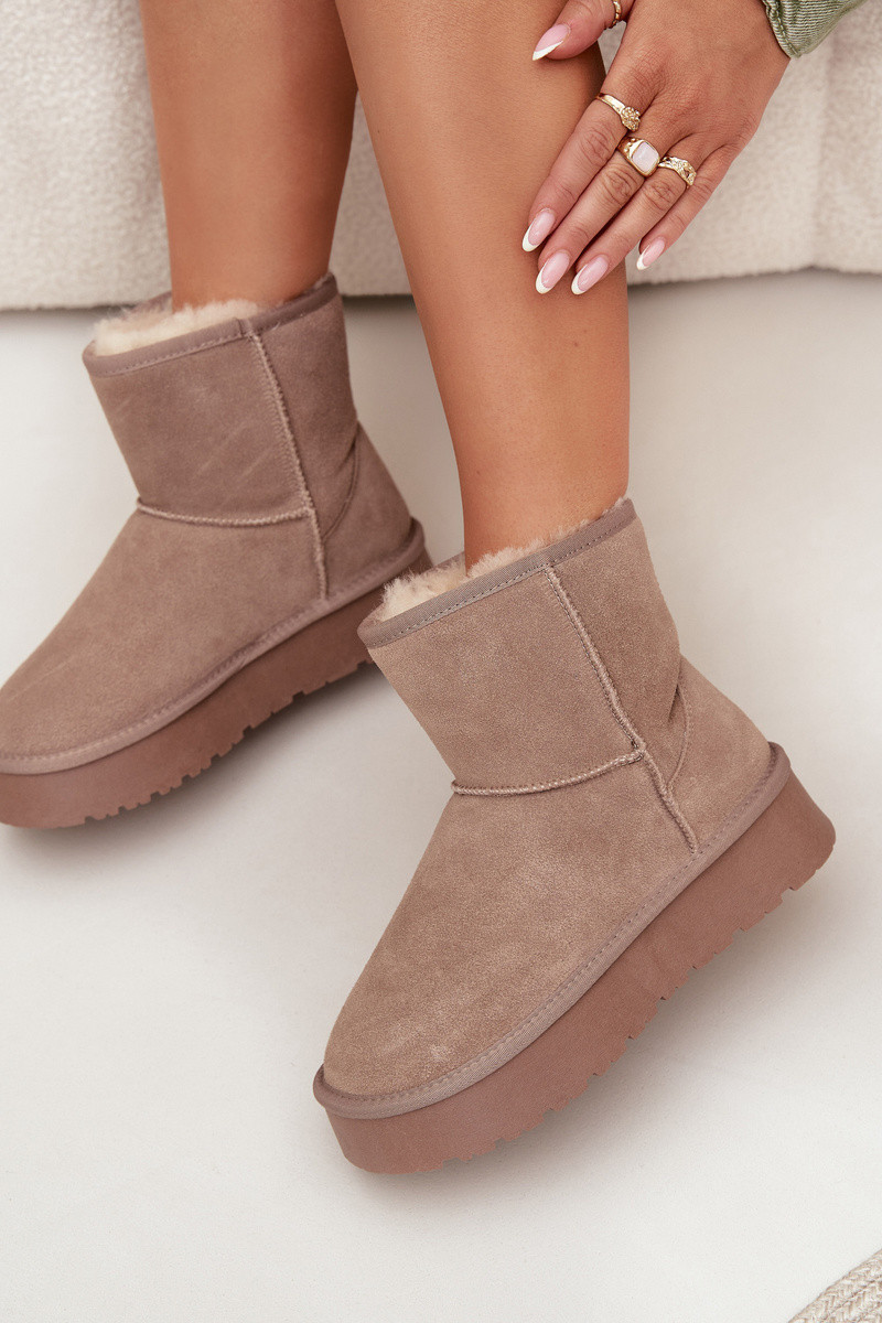 Dámské sněhule vyrobené z přírodního semiše. Vnitřek vyplněný měkkým kožíškem zaručuje pohodlí a teplo i v mrazivých dnech. Umístěny na platformě z gumového materiálu, účinně izolují od chladného povrchu a zajišťují pohodlí při každodenním nošení. Ideální volba na zimní výlety – praktické, módní a pohodlné. Při výběru velikosti se řiďte tabulkou velikostí. Při výběru velikosti se řiďte tabulkou velikostí.