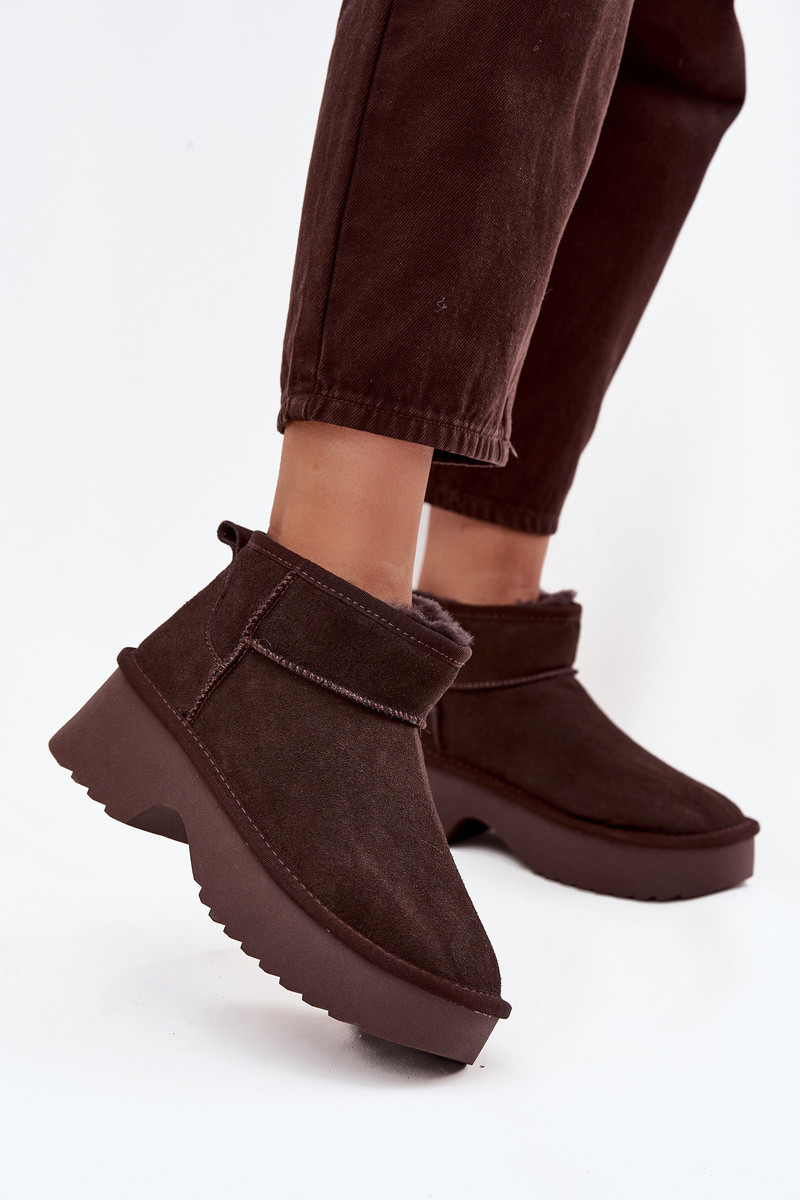 Dámské sněhule z pravé kůže vyhřívané kožíškem hnědé model 21714790 - Boto