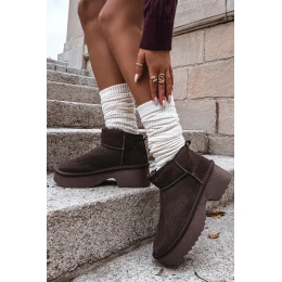 Dámské zimní boty vyrobené z přírodního semiše jsou stylovým návrhem na zimní dny. Umístěné na platformě, poskytují stabilitu a pohodlí při chůzi a zároveň účinně izolují od chladu. Vnitřek bot byl vyhřátý kožešinou, která zaručuje teplo a pohodlí v mrazivých dnech. Módní střih dělá z nich skvělý doplněk aktuálních trendů. Ideální volba pro ženy, které si cení stylu a pohodlí v zimních outfitech. Při výběru velikosti se řiďte tabulkou velikostí.