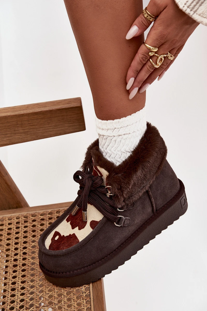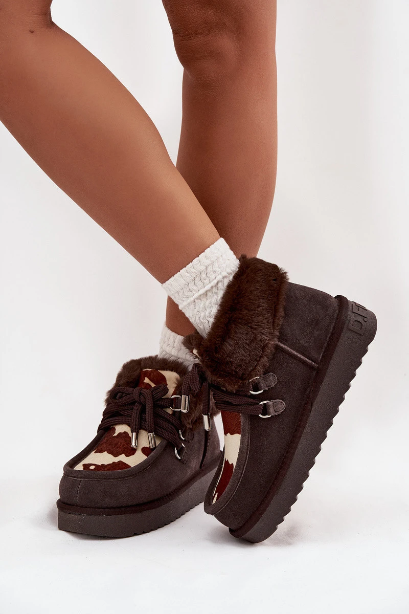 Dámské sněhule z přírodní semišové látky D.Franklin DFSH375008 čokoládové