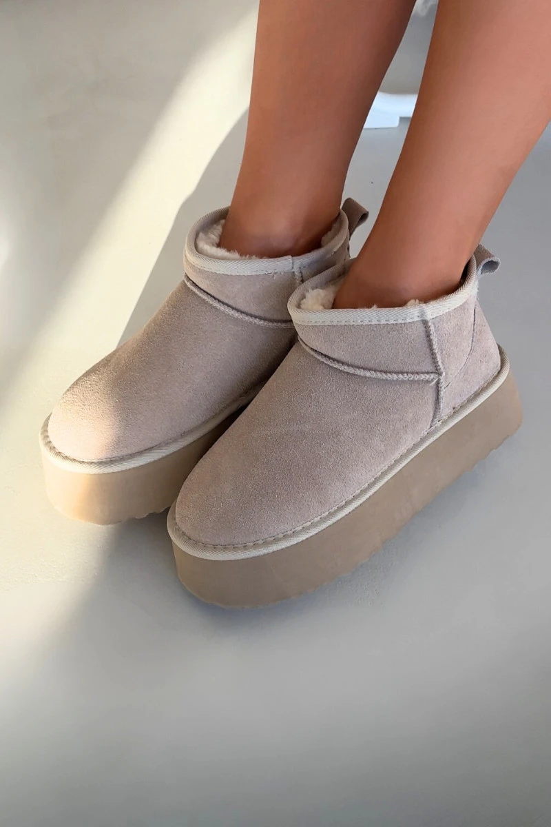 Dámské sněhule z přírodního semiše béžové Mairene